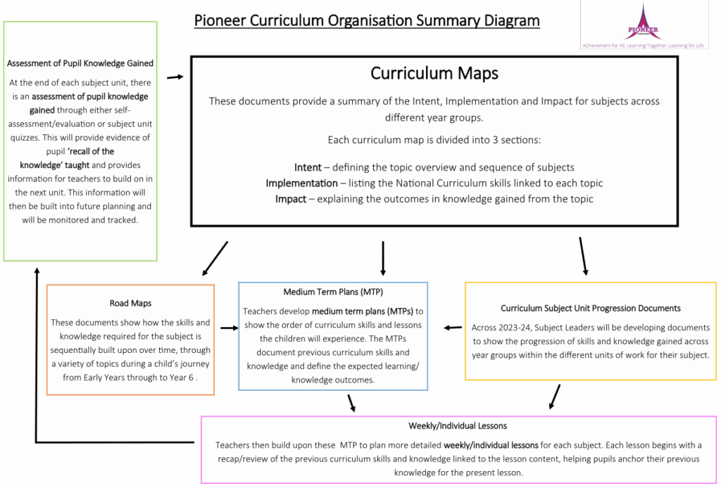 Across 2023-24, Subject Leaders will be developing Unit Progression Documents to show the progression of skills and knowledge gained across year groups within the different units of work for their subject. These unit progression documents can be used alongside the Curriculum Maps, Road Maps and Medium Term Plans to ensure clarity about the curriculum skills and knowledge gained with the Pioneer Curriculum.