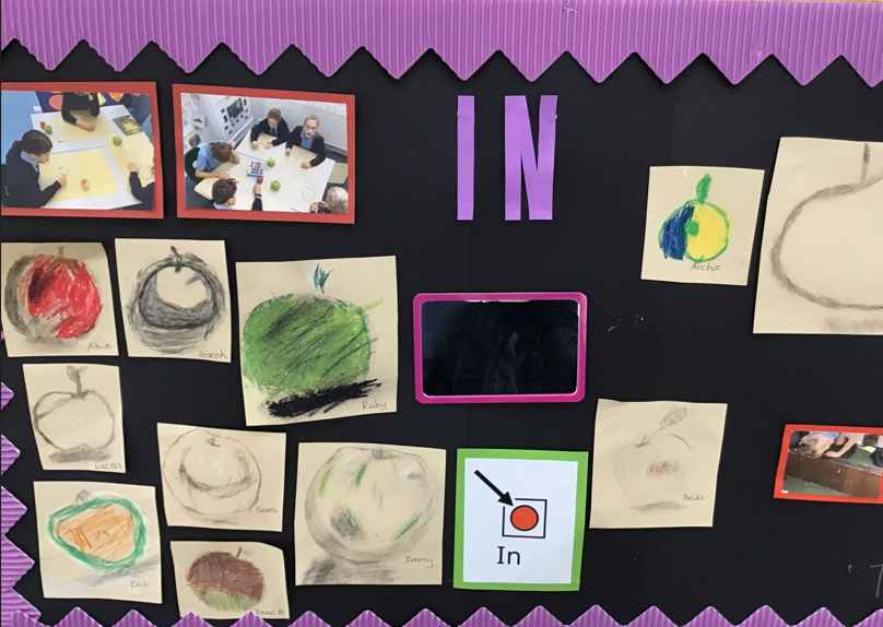 We were given apples to explore. We were encouraged to ask questions, to wonder and be curious as we looked in detail at the fruit. Children used their curiosity to then create images of the fruit that reflected their ideas about the apples.
